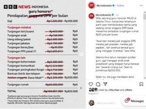 Publik bersuara pada aksi demo di kompleks parlemen RI 28 Agustus 2025 dan juga demo sebelumnya pada senin 25 Agustus 2025 dipicu oleh pemberian tunjangan perumahan Rp50 juta per bulan bagi anggota DPR, setara hampir 10 kali lipat upah minimum Jakarta 2025 yang hanya mencapai sekitar Rp5,3 juta. aksi protes besar yang menyoroti kemarahan publik atas tunjangan fantastis DPR RI. Media asing Bloomberg menilai gelombang unjuk rasa ini semakin menambah ketidakpastian terhadap stabilitas politik dan ekonomi Indonesia : “Protes-protes ini menambah ketidakpastian seputar kesehatan ekonomi Indonesia. Meskipun inflasi moderat dengan rata-rata sekitar 3% sejak pandemi, harga beras dan pendidikan yang tinggi telah memicu ketidakpuasan atas biaya hidup” (dalam artikel Media Asing Sorot Demo 28 Agustus Di Depan DPR RI, Sebut Ini, 2025). artinya, publik menilai ada ketidak adilan di tengah kondisi sulit yang di alami masyarakat, belum lagi sederet pernyataan kontroversial yang dilontarkan anggota DPR terkait dalih mereka akan tunjangan tersebut semakin mencederai rasa keadilan. Media BBC Indonesia bahkan sampai membandingkan tunjangan DPR dan guru honorer biasa, seperti pada tangkapan layar di atas (BBC News Indonesia, 2025). Tentu ini semua mencederai perasaan publik yang geram pada pemerintah yang dinilai tidak pro rakyat.